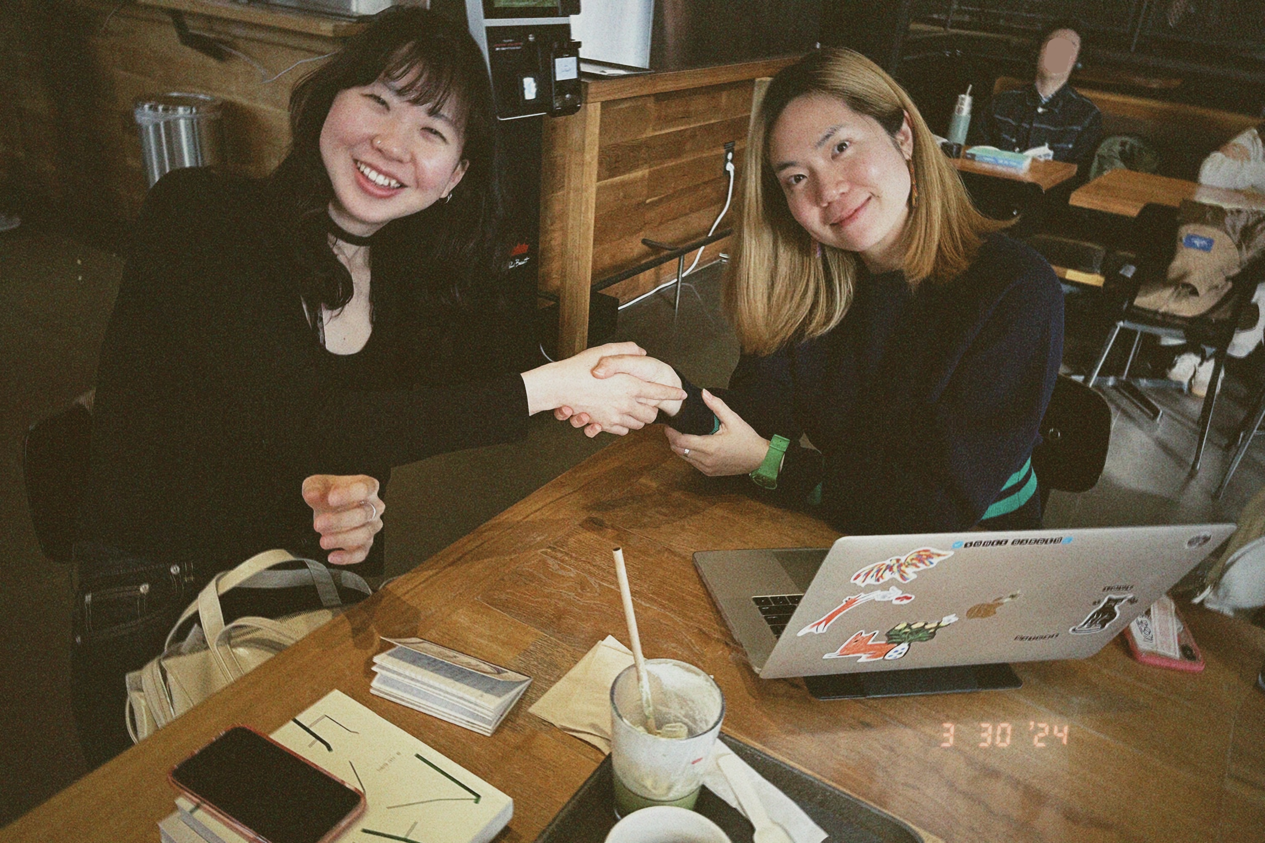 우소아 작가와 손을 맞잡았다(사진에서 보이는 그대로).