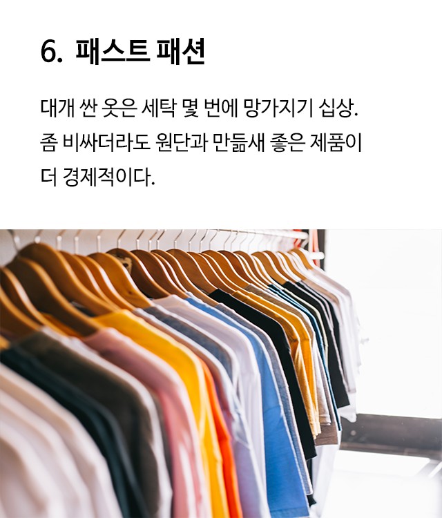 6) 동대문 도매, 자라보단 원단, 핏 좋은 브랜드 의류를 적은 빈도로 구매하도록 해봐야겠어요.