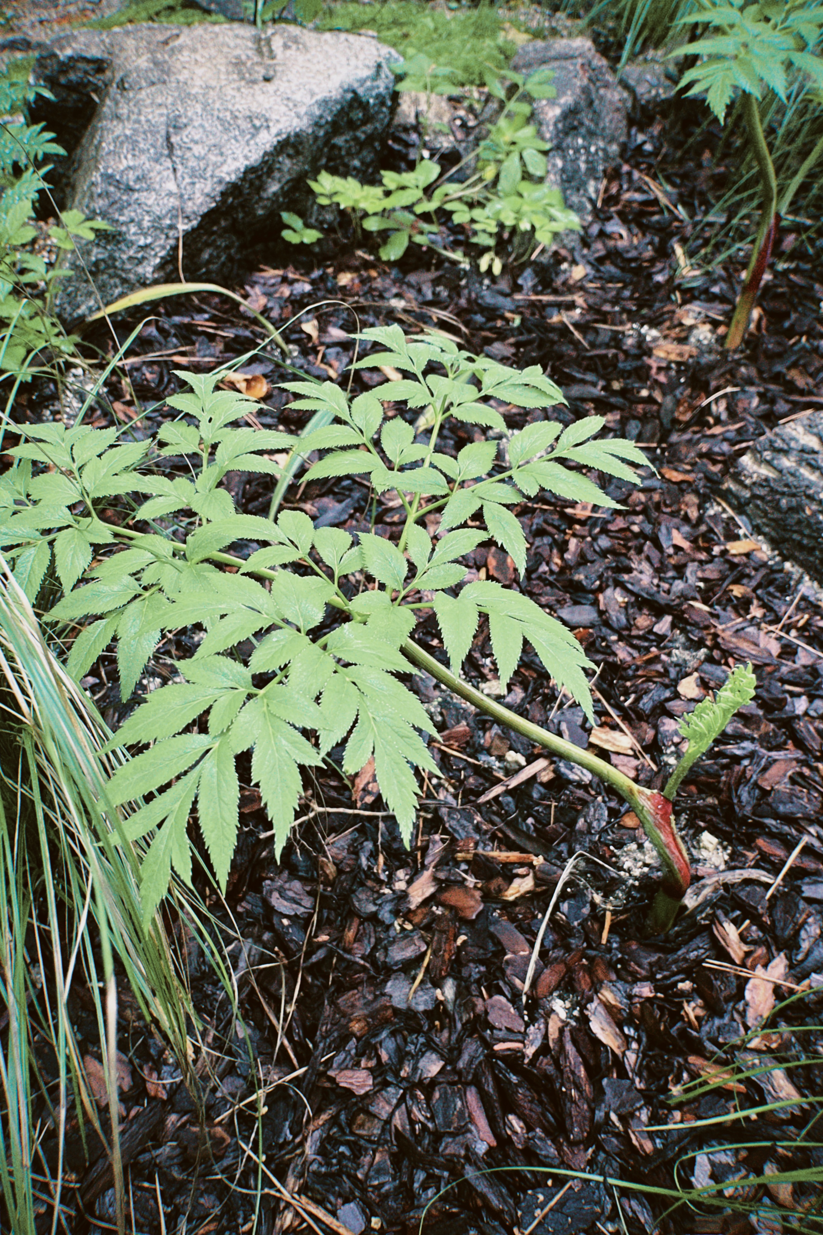 줄기가 특이한 구릿대. 산호랑나비가 여기에 알을 낳는다.