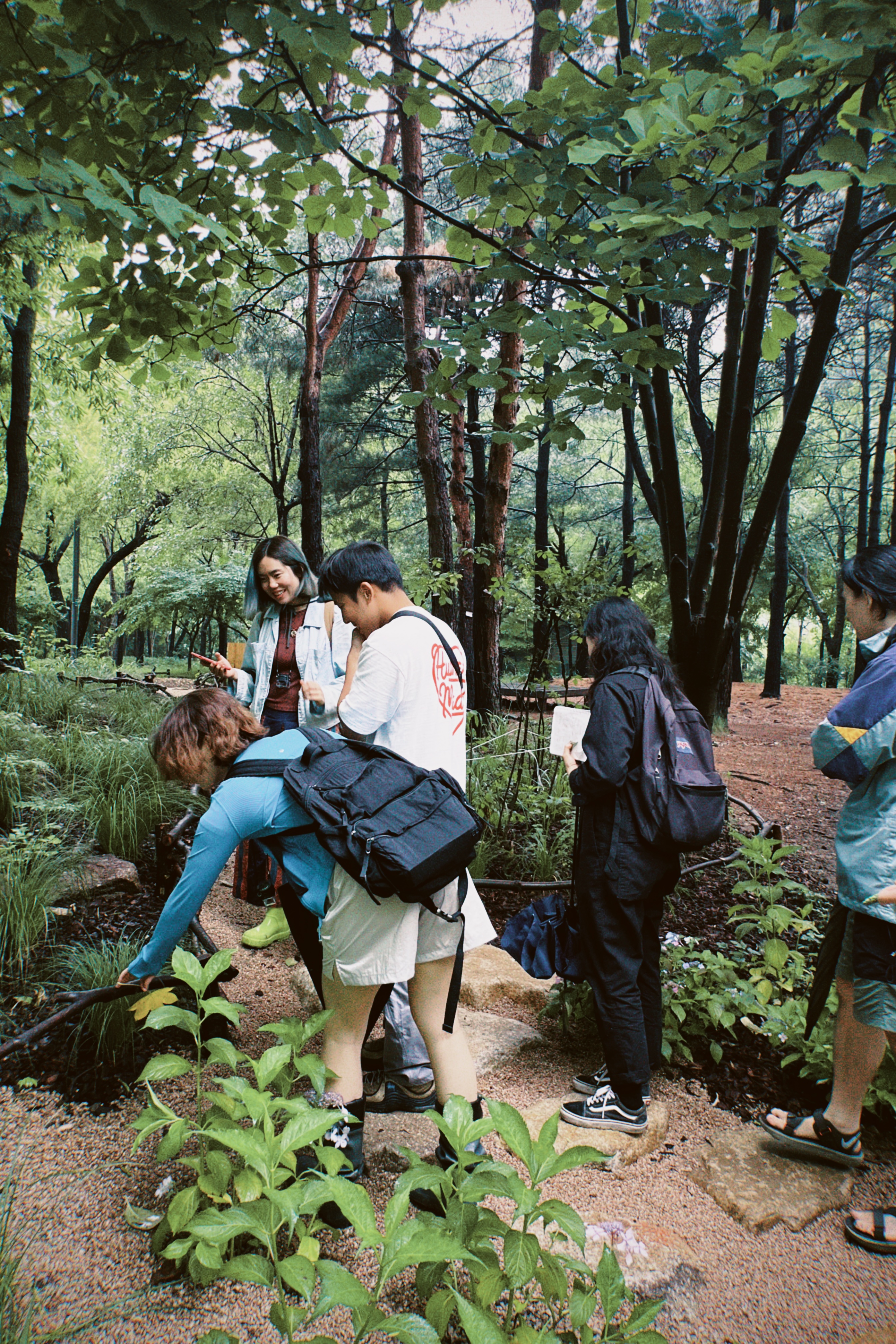 낮게 자란 풀의 향을 맡고 만지고 관찰하며 무릎으로