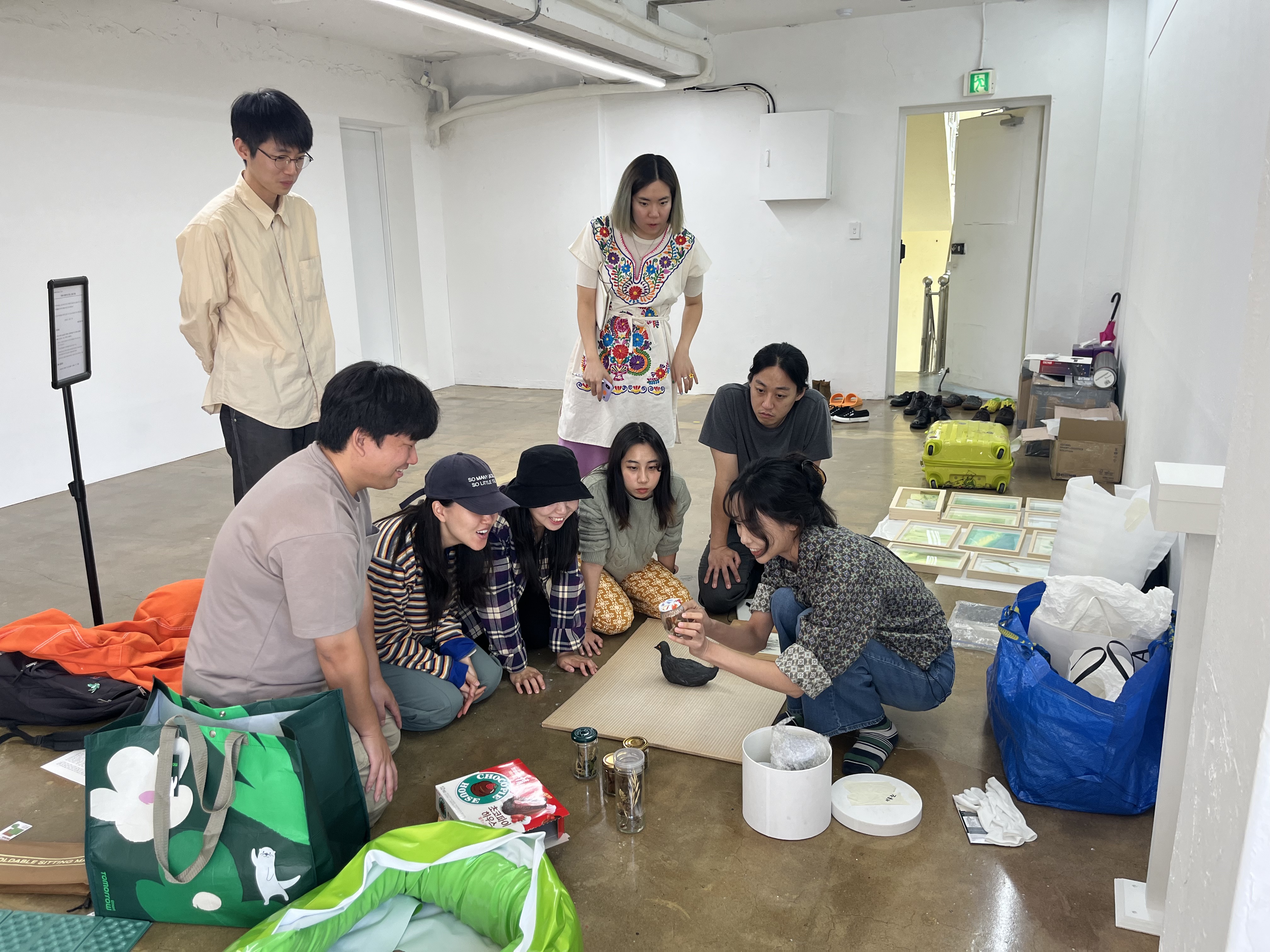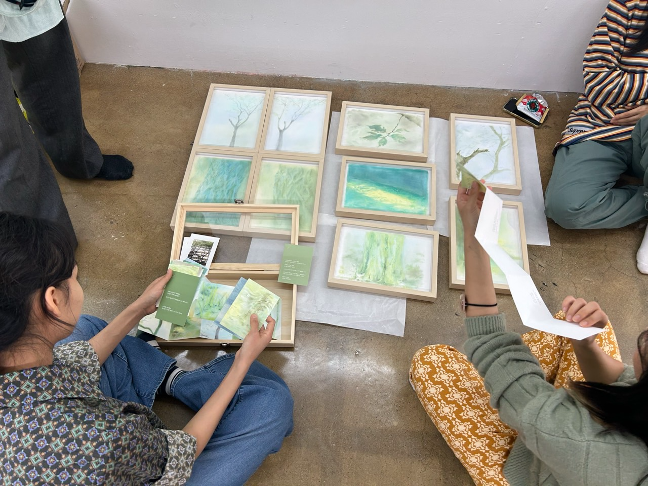 다음 주 전시 설치를 위해 작품을 가지고 온 멤버들