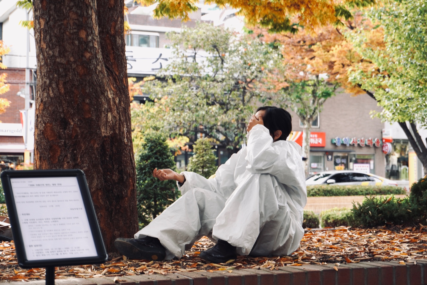 김지흔은 <2084 성북구: 이종과의 회의 보고서>에서 포스트 아포칼립스적 사회를 상정하고 있어서는 안될, 그러나 도래할 법한 새로운 아이덴티티를 자처한다. 또한 그는 전시장 앞의 인도에서 인간 종의 한계를 극복하려는 퍼포먼스 <회의합시다>를 선보인다. 김지흔이 극복하려는 것은 한 종으로 태어난 신체가 갖는 필연적인 움벨트의 한계이다. 식물과 곤충과 그 너머의 자연과 소통을 갈라놓는 대상은 다름아닌 자신의 감각과 자아이다. 몸짓과 마음짓으로 불가능한 상대와 이어지고자 하는 이 퍼포먼스에서 김지흔이 무엇을 새롭게 깨닫는지 관람객들이 함께 짚어나가길 바란다.